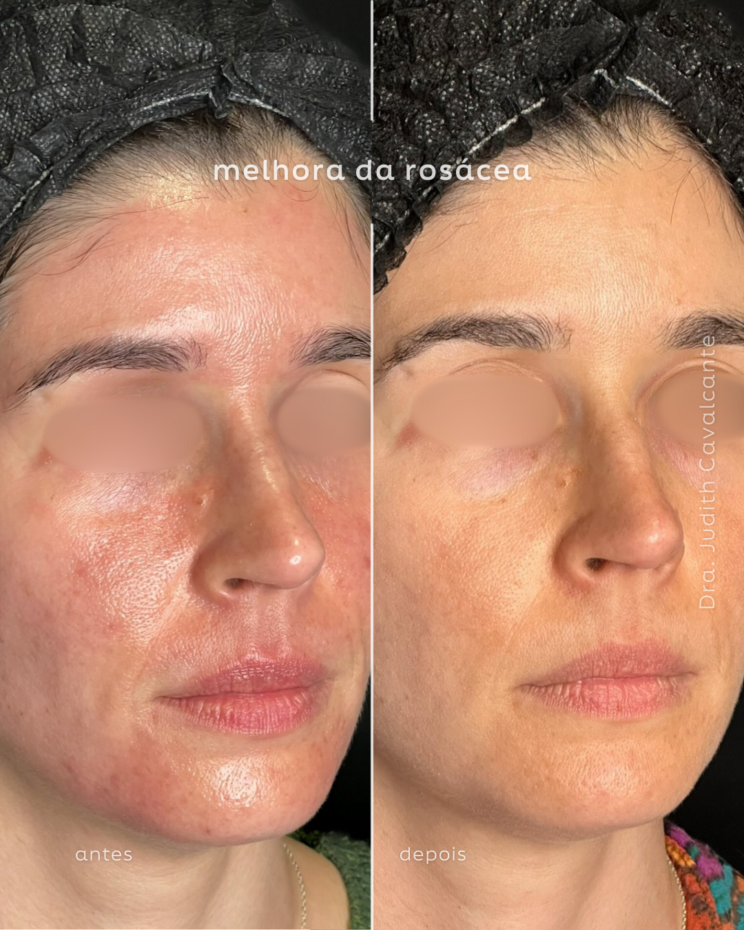 Neste antes e depois, o resultado fala por si: uma pele mais uniforme, com redução visível da vermelhidão e melhora na textura. Usamos o protocolo Skin360 que associa diversos tipos de laser, com delicadeza e precisão, num só tempo!