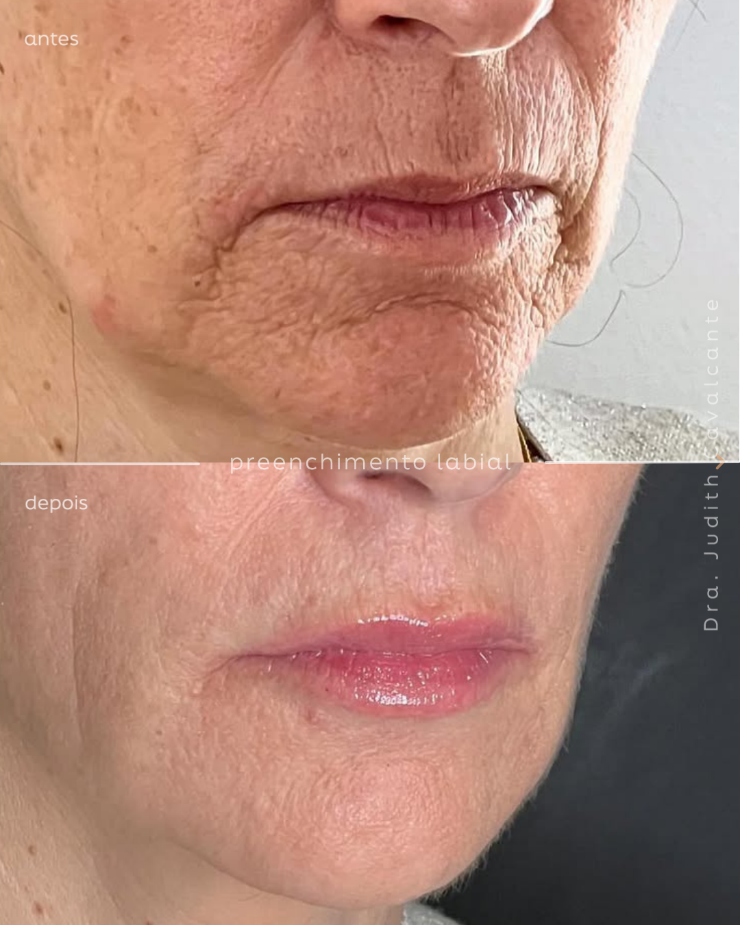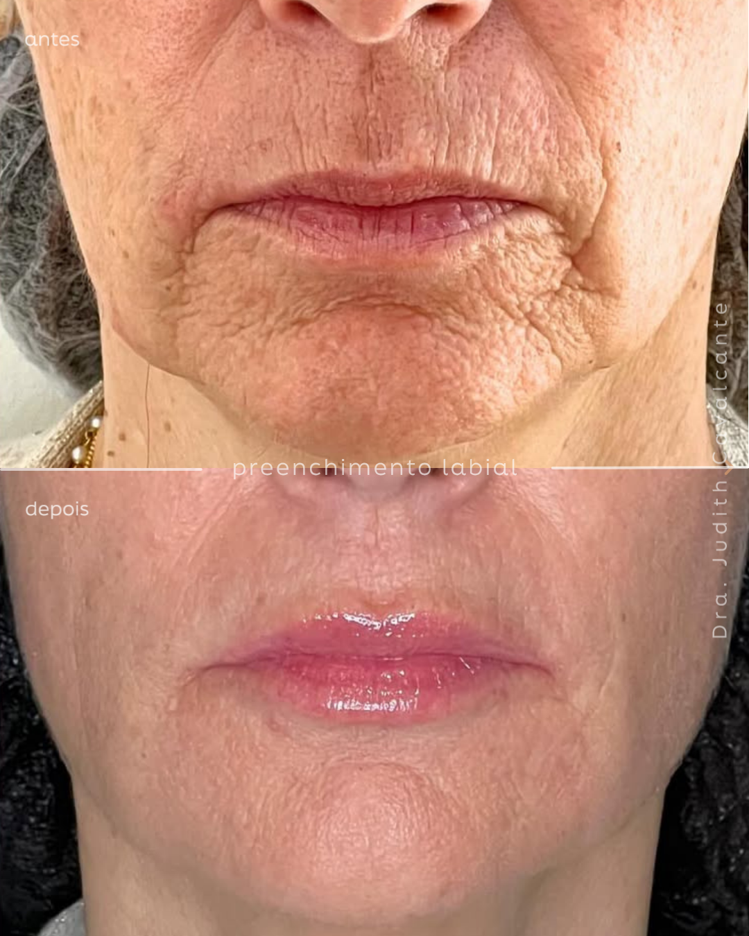 Nessa paciente, preenchemos os lábios sim, mas só depois de tratar a qualidade da pele e reestruturar o terço inferior do rosto.